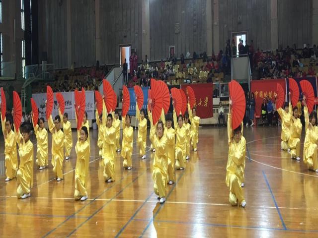 赛场上, 功夫扇参赛团队动作优雅大方,端庄而不失流丽,刚健蕴含柔美, 同学们或怀中抱月,或灵猫捕蝶,或鹞子翻身,把功夫扇欲扬先抑、欲刚先柔的特点表现到位。初级剑术以拳势为基础,熟识兵器,延伸肢体,剑为己身,以身驭剑, 队员动作轻灵柔和,绵绵不断,重意不重力,优美潇洒,剑法清楚,形神兼备。太极拳表演以静制动,以柔克刚,避实就虚,借力发力,参赛队员们动作随人则活,由己则滞,表现出了太极含蓄内敛、连绵不断、以柔克刚、急缓相间的特点。