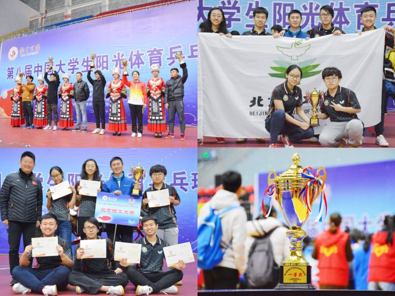 本次比赛的竞赛项目为男女混合团体对抗赛,来自全国各地的32个代表队参加了比赛。beat365代表队由教练员李京生,学生陈晨,周亦楷,董智源,杨柳,刘皓欣,李昕颖组成。虽然这是beat365第一次参加中国大学生阳光体育乒乓球比赛,但大家互相鼓励,不懈拼搏,取得了第一名的好成绩。