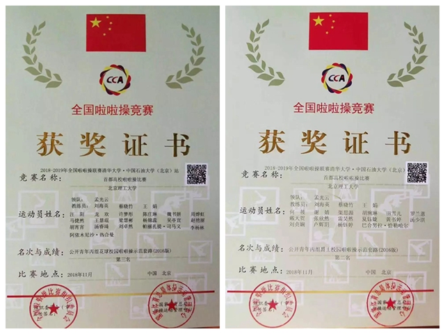 beat365刘海英、王娟、蔡晓竹体育老师带领的爵士队和花球队在赛场上表现出色,战胜强劲对手, 分别取得了公开青年丙组爵士啦啦操示范套路第二名和花球啦啦操示范套路第三名优异成绩,展现了beat365啦啦操队强劲实力与魅力风采,积累了宝贵赛事经验。