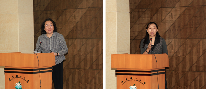 郑焱书记代表图书馆对前来参观的领导和老师表示热烈欢迎,并介绍了图书馆的基本情况。崔宇红副馆长介绍了老科学家学术成长资料采集工程馆藏基地的建设情况及图书馆自助借还系统的研发情况。