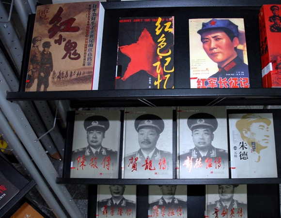 书展醒目的位置上陈列着《毛泽东传》、《红色记忆》等经典图书,展品种类包括纪实文学、历史材料、人物传记、文学作品等。