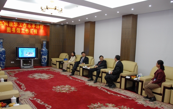 11月16日下午教育部本科教学工作水平评估专家组成员傅丰林教授到图书馆走访,在贵宾室,馆长张永发向傅教授汇报了图书馆的工作和未来的发展规划,并对傅教授的提问逐一作了详细的回答。