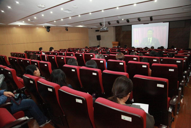 2017年10月18日上午9:00,图书馆组织全体教职工在一层报告厅集体学习观看十九大开幕式直播,习近平总书记代表第十八届中央委员会向大会作报告,全体职工认真学习领会十九大报告精神。