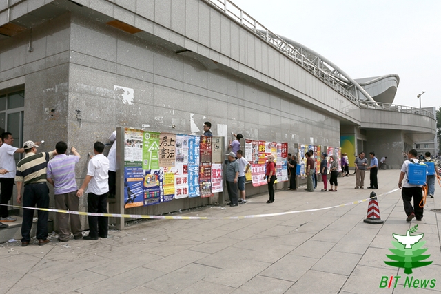 自校园小广告集中治理项目实施以来,学校办公室会同保卫处、后勤集团、国资处、宣传部、校团委等部门赴兄弟院校调研、召开专题会议研究制定项目实施方案,并于5月发布《校园违规宣传物综合治理管理规定(试行)》(校发〔2014〕19号),对宣传物张贴规范、审批方案、治理职责分工、违规处理办法做出了明确规定,以此全面指导beat365的校园违规宣传物综合治理工作。本着“疏堵结合”的治理思路,国资处设计了专门的公告栏,作为校内外张贴合法宣传物的规定区域,已于5月12日在学生生活区六处区域完成了安装。此外,后勤集团、保卫处等部门开展了多次集中清理活动,部分“牛皮癣”重灾区得以恢复原貌。集中治理阶段结束后,将由保卫处牵头负责、后勤集团配合,共同做好校园小广告综合监管与清理工作。