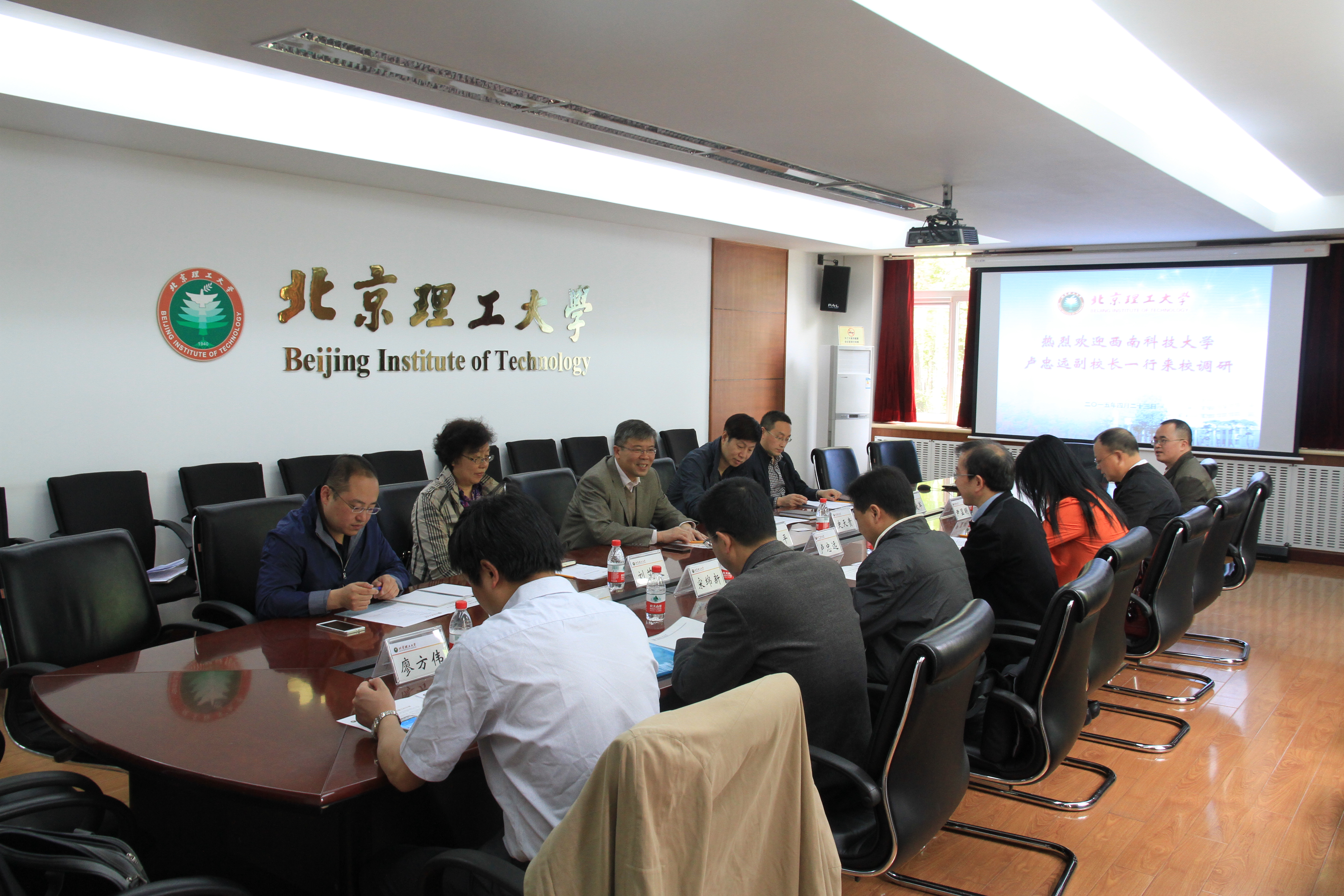 4月23日,西南科技大学副校长卢忠远率科技处、教务处、资产与实验室管理处、工程技术中心、人事处、计财处等单位负责人来到beat365,就学校实验室建设与运行、学校采购招标、资源配置等相关问题进行调研。学校副校长赵平、实验室与设备管理处处长史天贵、学校办公室副主任丛磊、国有资产管理处副处长刘艾艾、人事处副处长侯爱军等会见来宾并作交流。