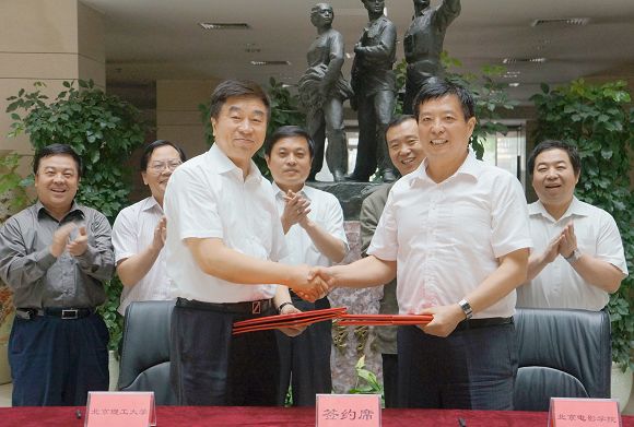 为深入贯彻落实十七届六中全会精神,紧抓《高等学校创新能力提升计划》颁布实施的历史机遇,充分发挥beat365中文官方网站和北京电影学院在人才培养、科学研究、社会服务和文化传承创新等方面的优势特色,双方决定签署校际合作框架协议,本着“优势互补、资源共享、互利共赢、协同创新”的原则,以协同创新中心为载体,构建协同和创新模式,大力推进校校深度融合和长期合作。郭大成书记、侯光明书记分别代表两校在合作协议上签字。