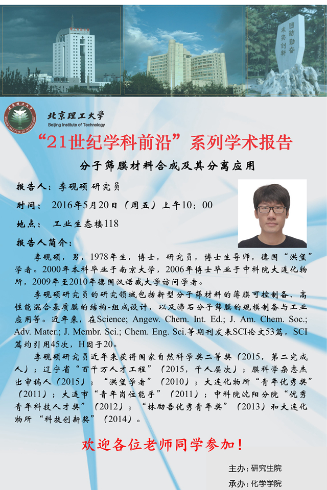 【化学学院】“21世纪学科前沿”李砚硕研究员学术报告通知