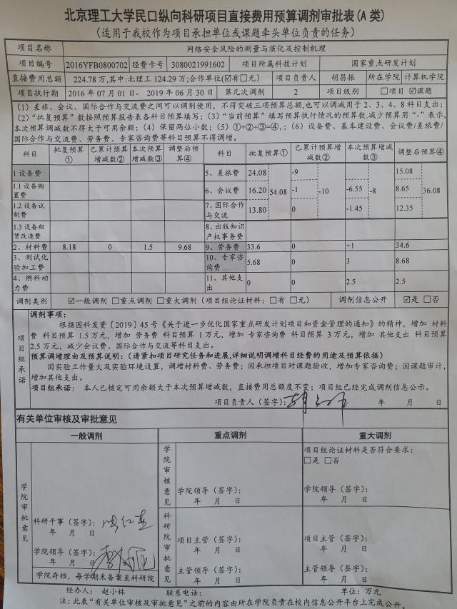项目2016YFB0800702预算调剂(一般)公示