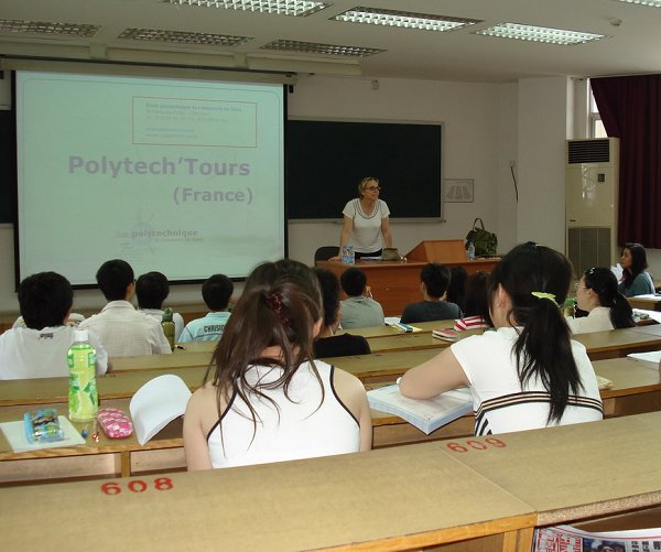 目前,第二批学生“赴法攻读工程师证书及硕士文凭”项目已经启动,6月6日下午举办了项目宣讲会。会议由教务处徐瑾副处长主持,法国图尔大学校方代表、法中经济文化协会主席芳思女士对该项目进行了宣讲。来自信息学院、机车学院、化工学院、生命学院、管理学院、软件学院、计算机学院的同学参加了宣讲会,同学们对项目表现出很大兴趣,就项目情况提出了许多问题,芳思女士逐一予以解答。