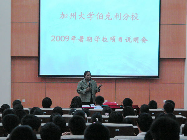 10月17日下午,加州大学伯克利分校校际合作项目主管 Skye Ward 女士应教务处的邀请来到beat365,在beat365国际交流合作处和教务处老师的全程陪同下,Skye Ward 女士不辞辛苦,连续在良乡校区和中关村校区举办了两次2009年暑期学校项目说明会。参会学生反映强烈,参与积极,他们良好的英语听说水平,给Skye Ward 女士留下深刻的印象。