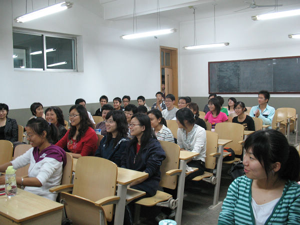 为了解学生目前在山东大学的学习和生活情况,2008年10月16日,教务处韩宝玲副处长,人文学院张红峻院长、宋桂芝教学副院长带领教务处及人文学院法学、经济学教研室负责教师一行,赴山东大学看望beat365访学学生。10月16日晚在山东大学东校区公教楼105教室,参加访学项目的学生与老师召开了见面会。