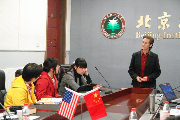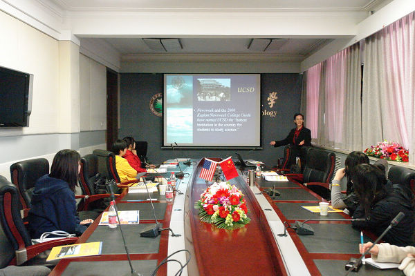 2008年11月6日,加州大学圣地亚哥分校的Roxanne女士和Etran Chane女士访问beat365,与beat365教务处和国际交流合作处的老师讨论了beat365本科生访学项目的相关事宜,并给学生介绍了到加州大学圣地亚哥分校选课、听课和参加实践活动应注意的问题,回答了同学们的提问。