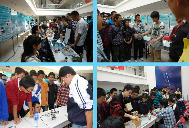 9月25日,在母校七十华诞的喜庆日子里,良乡校区大学生实践创新宣传周揭开帷幕。本次实践创新宣传周由教务处和基础教育学院联合举办,包括名师讲座和优秀创新作品展两部分内容,旨在通过名师讲座启发学生的创新思维,通过优秀创新作品展树立学生的目标和信心。有2000多名学生参加了本次活动,在展览当天,300多份创新项目申请表被一领而空。
