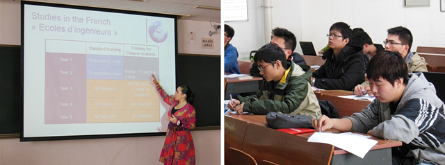 此外,图尔大学工程师学院、奥尔良大学工程师学院分别详细反馈了beat365历届学生在法国的学习情况,项目运行良好。beat365自2008年开展了本项目,先后有68名同学参加项目,2013年9月将有11名同学赴法学习。当天下午1:00,图尔大学工程师学院的老师为beat365学生介绍了赴法访学及读研项目,以及图尔大学工程师学院和奥尔良大学工程师学院的相关情况,并回答同学们的问题。