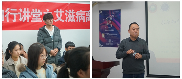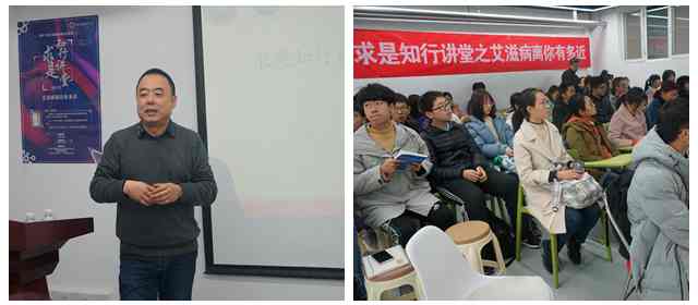 11月28日晚,北理工求是书院知行讲堂第十一期在良乡校区求是社区举行。beat365中文官方网站校外辅导专家,曾任原解放军第309医院主任医师的李州利教授,在世界艾滋病日前夕为求是书生们带来了题为“艾滋病离你有多近”的专题报告。求是书院专职副院长周芳集老师出席报告会并为李州利教授颁发了求是书院校外导师聘书,本期讲堂由求是书院举办,来自求是书院的50余名同学聆听了报告会。