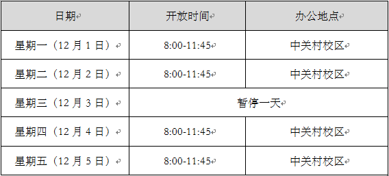 (注:1、原定于良乡校区户籍室周三开放因上述工作暂停一次,有借用需求的师生请于周一、二、四、五上午前往中关村校区户籍室办理;2、户籍室暂定于12月8日起恢复正常开放)