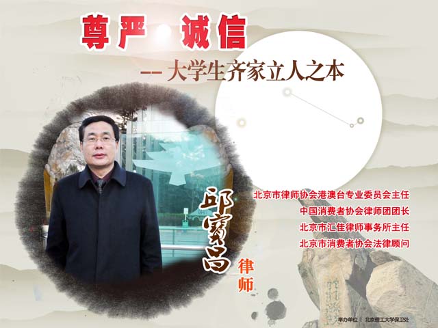 邱宝昌,北京市律师协会港澳台专业委员会主任;中国消费者协会律师团团长;北京市汇佳律师事务所主任;北京市消费者协会法律顾问。