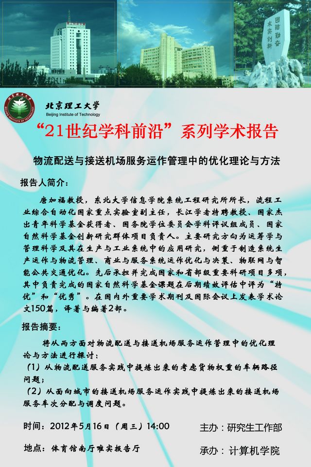 > 5月16日计算机学院“21世纪学科前沿”系列学术报告