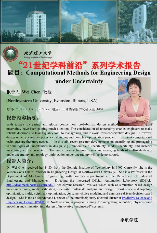 宇航学院7月4日“21世纪学科前沿”学术报告预告