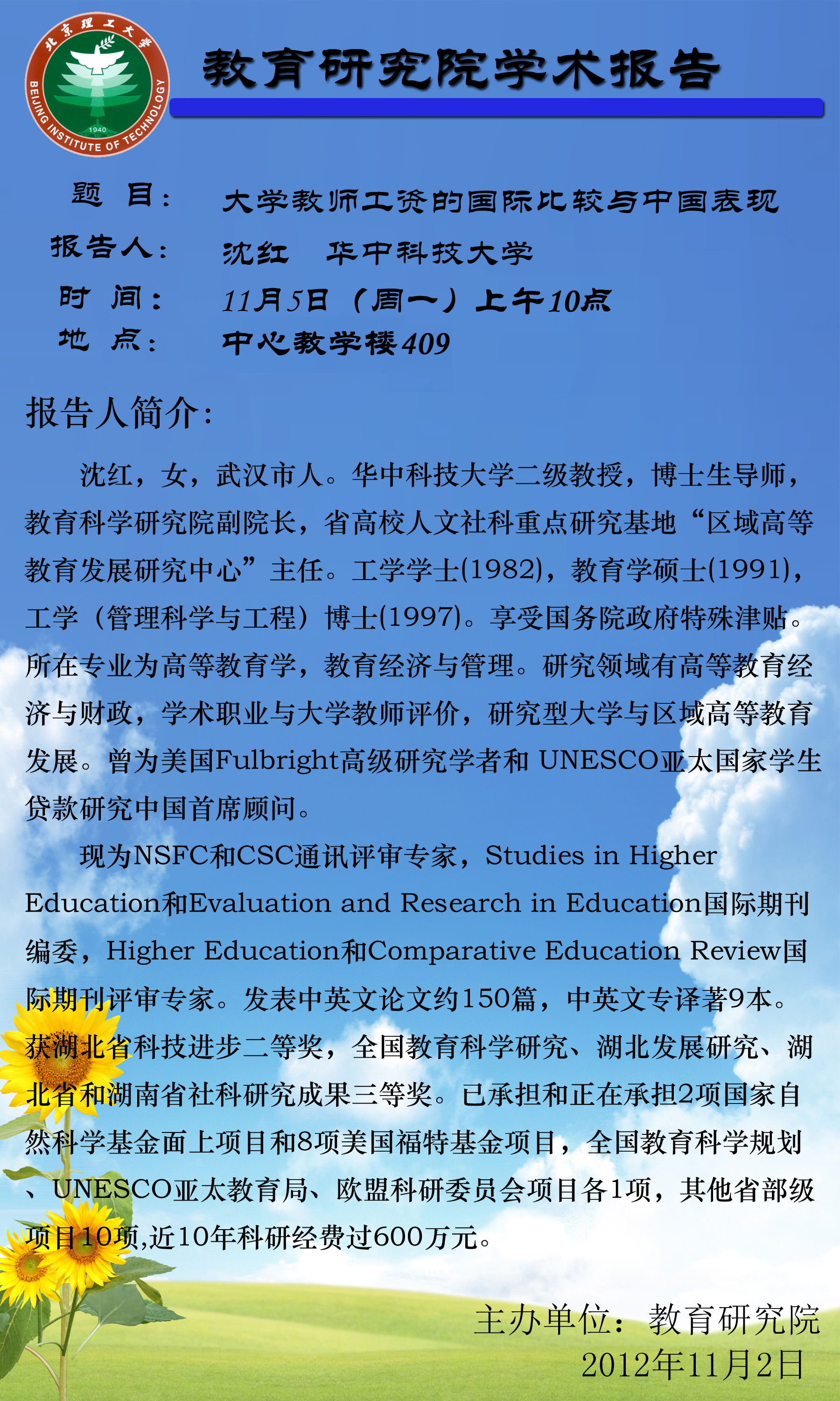 > 学术报告:沈红——大学教师工资的国际比较与中国表现