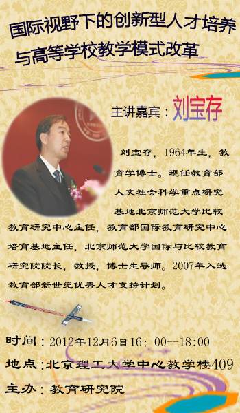 学术讲座:刘宝存——国际视野下的创新型人才培养与高等学校教学模式改革