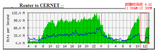 后经与beat365上联节点——北京大学沟通,最终确定故障原因为整个教育网断网,除beat365外的其它高校节点均发生了类似的故障现象。