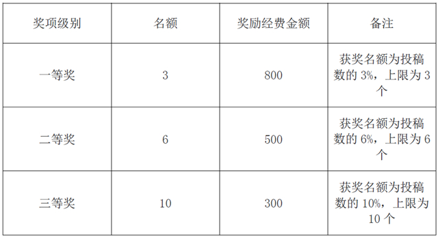 表1:类别一优秀网络文章比赛奖励标准