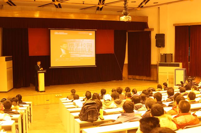 在热烈掌声中,栾润峰先生走上讲台,以自己的经历,向大家讲述了创业过程的艰辛和实现梦想的满足。金和软件,从初期创立时一个“默默无闻”的小公司,到现在中国协同管理软件第一品牌,其发展历程是一部生动的创业史。接者,栾先生用幽默的语言,揭示出创业与就业中存在的一些问题,并向大家解释了什么是人才以及金和企业的人才观。