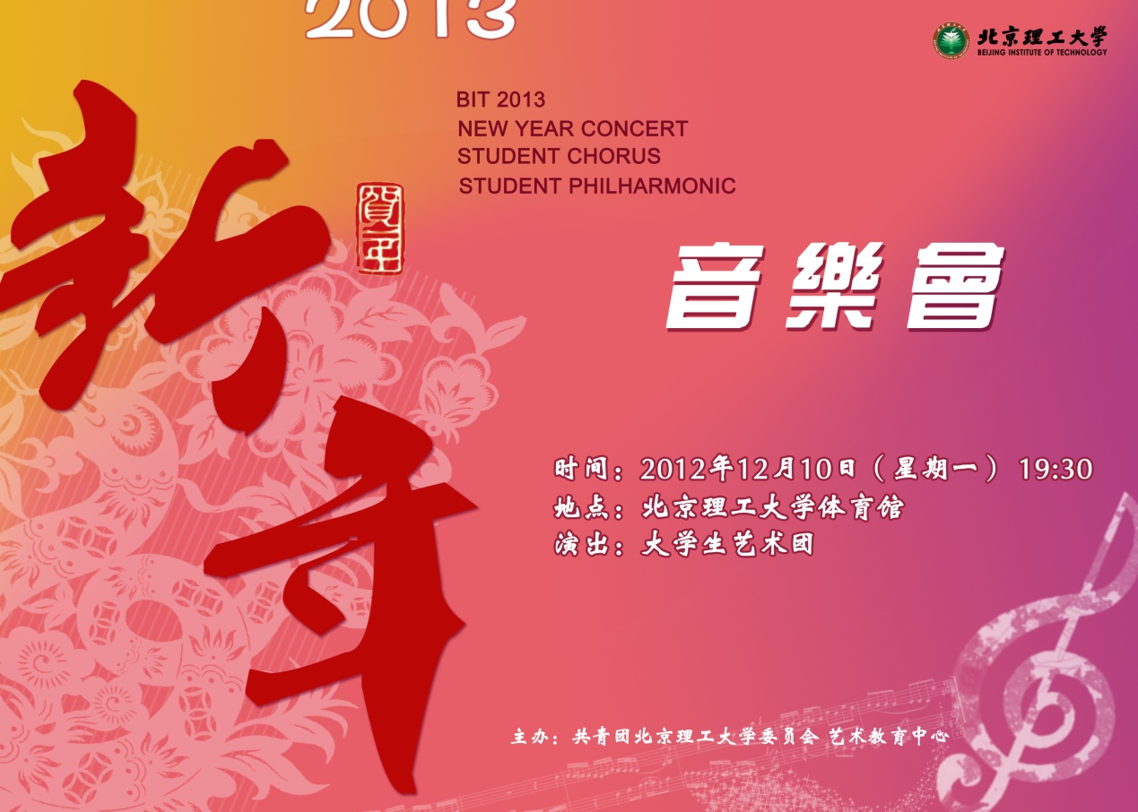 beat365中文官方网站2013年新年音乐会将于2012年12月10日(星期一)19:30在中关村校区举行。学校团委将联系社区党工委、学校工会、离退休工作处、后勤集团、留学生中心及各学院组织票务登记及发票事宜。敬请关注。