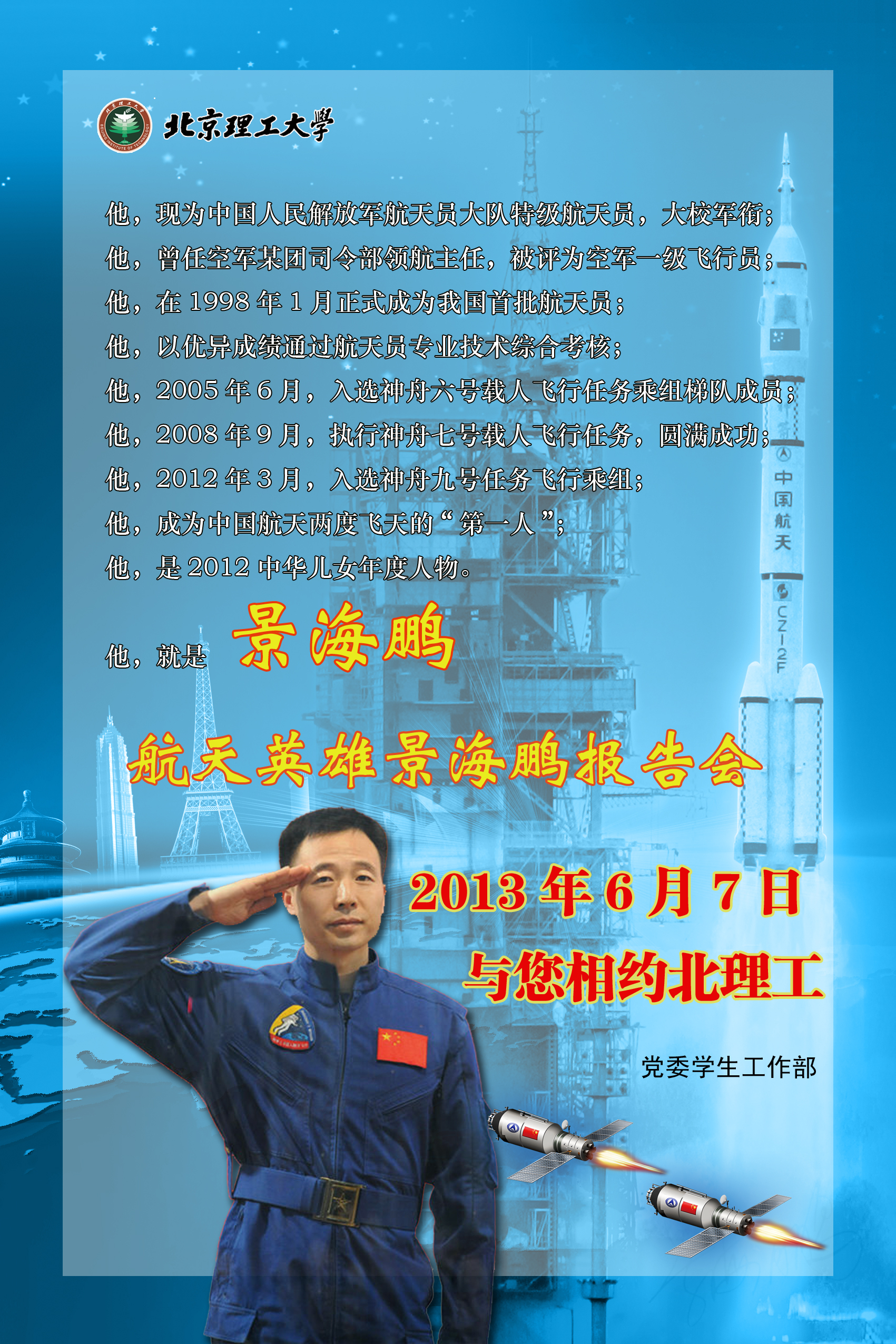 6月7日航天英雄景海鹏报告会预告