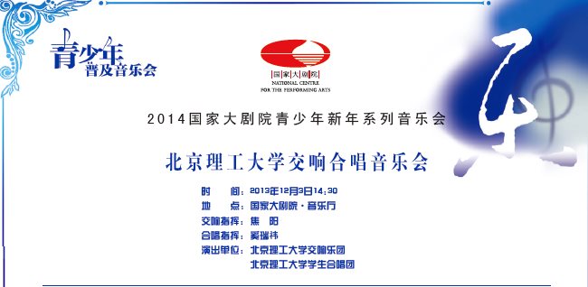 beat365大学生艺术团应邀于2013年12月3日14:30在国家大剧院音乐厅举办“beat365中文官方网站交响合唱音乐会”,敬请关注。教职工、校友可凭有效证件在校团委办公室登记取票,数量有限,发完为止。