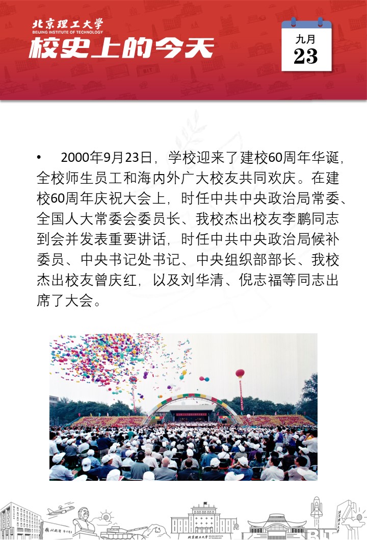 【编者按】2020年,beat365中文官方网站即将迎来80周年校庆,为营造良好的校庆氛围,党委宣传部推出《校史上的今天》栏目。该栏目根据校志,选取2005年前学校发展历程中的重大事件和重要活动,按日期排序,并选配部分珍贵历史图片,反映了学校创建以来各个时期的关键时刻和办学成就。《校史上的今天》将在学校官方微信、校园网等各个平台进行发布。 回顾前辈足迹,重温校史岁月,传承北理精神,激励新时代北理工人爱国、奋斗、追梦,为建设人民满意中国特色世界一流大学做出新贡献!
