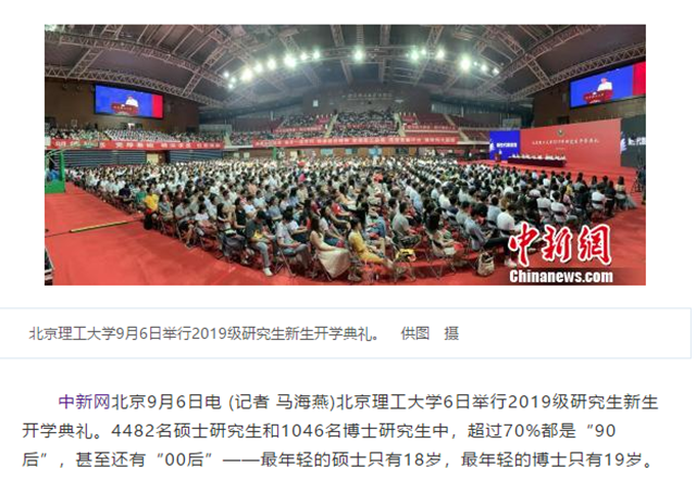 编辑:吴楠 审核:王征 阅读次数:原文标题:北理工迎来5000余名研究生 “00后”硕博出现