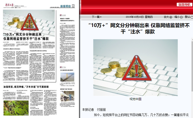 编辑:吴楠 审核:王征 阅读次数:原文标题:“10万+”网文分分钟刷出来 仅靠网络监管挤不干“注水”爆款