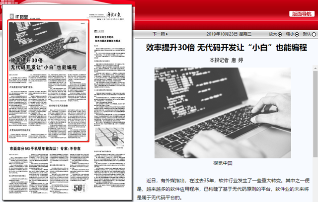 编辑:吴楠 审核:王征 阅读次数:原文标题:效率提升30倍 无代码开发让“小白”也能编程