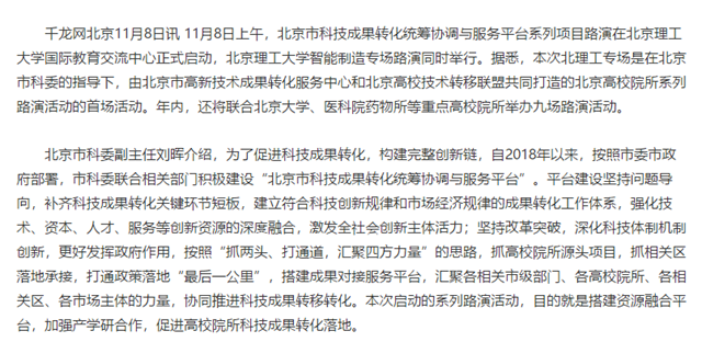 打造资源融合平台 加速成果转化落地——北京市科技成果转化平台系列路演拉开帷幕