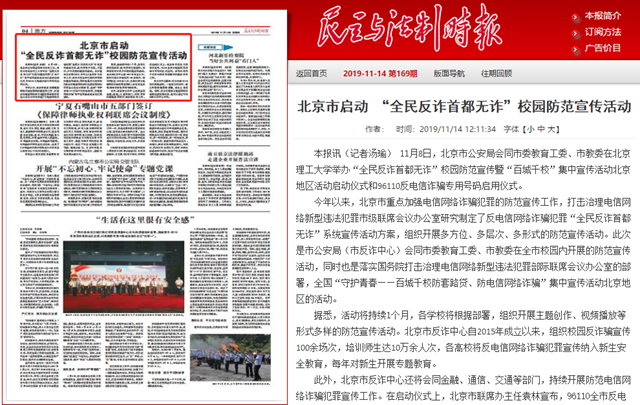 北京市启动 “全民反诈首都无诈”校园防范宣传活动