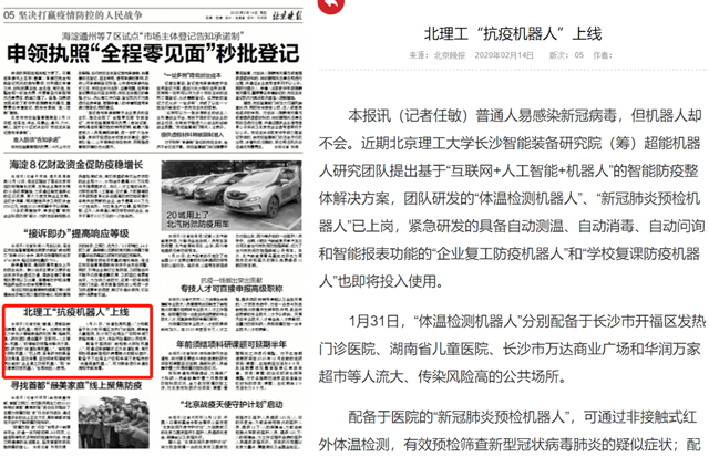 编辑:吴楠 审核:王征 阅读次数:原文标题:北理工“抗疫机器人”上线