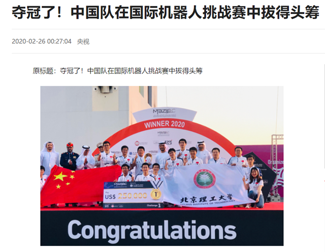 编辑:吴楠 审核:王征 阅读次数:原文标题:夺冠了!中国队在国际机器人挑战赛中拔得头筹
