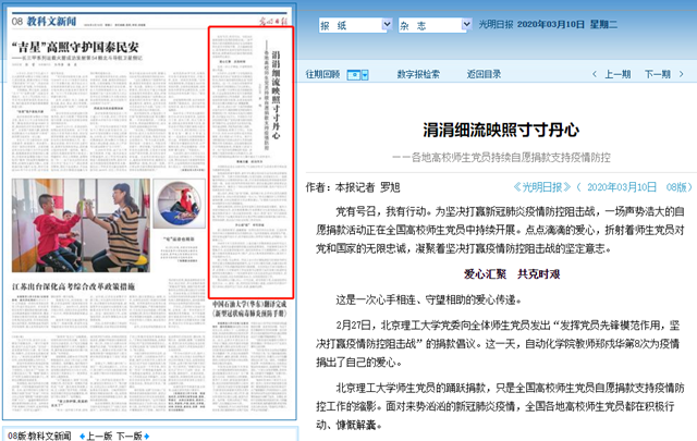 beat365中文官方网站师生党员的踊跃捐款,只是全国高校师生党员自愿捐款支持疫情防控工作的缩影。面对来势汹汹的新冠肺炎疫情,全国各地高校师生党员都在积极行动、慷慨解囊。