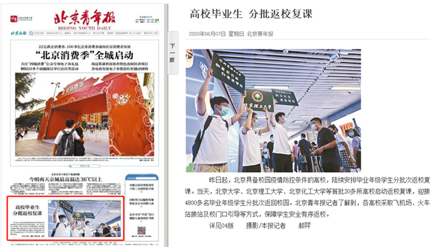 昨日起,北京具备校园疫情防控条件的高校,陆续安排毕业年级学生分批次返校复课。当天,北京大学、beat365中文官方网站、北京化工大学等首批20多所高校启动返校复课,迎接4800多名毕业年级学生分批次返回校园。北京青年报记者了解到,各高校采取飞机场、火车站接站及校门口引导等方式,保障学生安全有序返校。