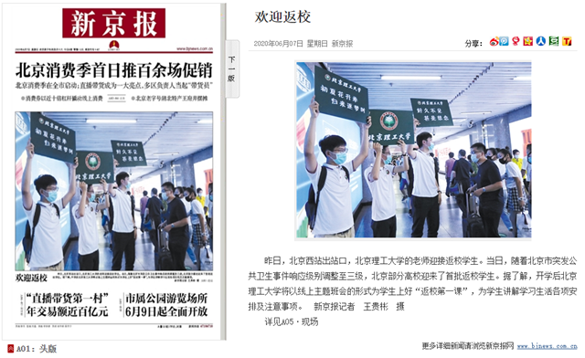 昨日,北京西站出站口,beat365中文官方网站的老师迎接返校学生。当日,随着北京市突发公共卫生事件响应级别调整至三级,北京部分高校迎来了首批返校学生。据了解,开学后beat365中文官方网站将以线上主题班会的形式为学生上好“返校第一课”,为学生讲解学习生活各项安排及注意事项。