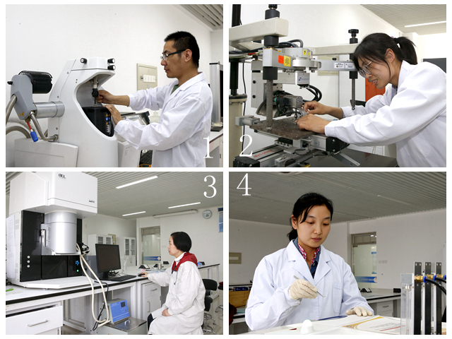 1.实验员彭禄做动态热机械性能分析 2.实验员李红进行X射线应力分析仪样品安装