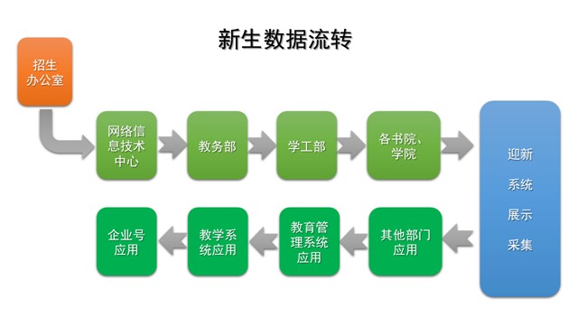 近年来,北理工迎新工作堪称是信息化提升工作效能的典型案例,学校自2012年起实施“数字迎新”,从初期仅实现“无纸化”到现在实现 “新生未入校,数据已流转,手机扫一扫,发卡即报到”。通过网上预报到系统实现信息采集反馈、费用缴纳、管理体系构建的前置,有效消除了报到当日人流与信息流的密集叠加,实现了对招生、教务、学生、后勤等多部门工作流程改造的“反驱动”。迎新报到工作的流程再造,有效提升了管理效能,使迎新报到从繁琐的办理入校手续变为一场温馨热烈的“嘉年华”。