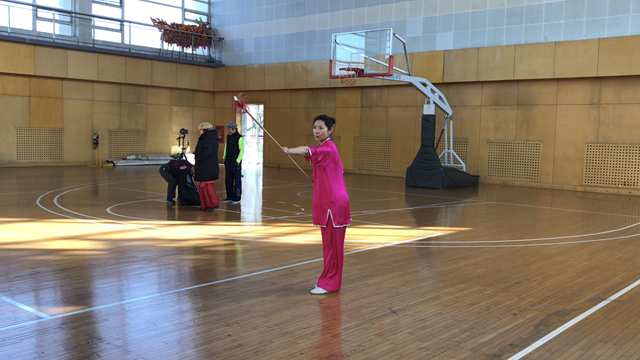 赵铃在录制枪术教学视频