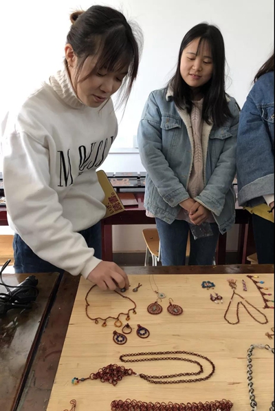 “作为教师,我们就是要想尽办法给学生呈现最好的文化宝藏,这样才能将中华文化传承下去。”2010年,带着对传统工艺美术的热爱和满满的成绩,满芊何从日本神户艺术工科大学访学归来,在学校的支持下,将蜚声国际的珐琅工艺课程,带到北理工学子的身边。满老师工作室里,遍布着进口颜料、品牌宣纸、外文资料……,为上好“首饰设计”等传统工艺课程,成本着实不低。带着传承中华传统文化、培育一流人才的使命,满芊何十几年来,将一场场传统艺术与现代文明的结合、一次次中华文化与青年价值的碰撞,深植在了学生的心中。