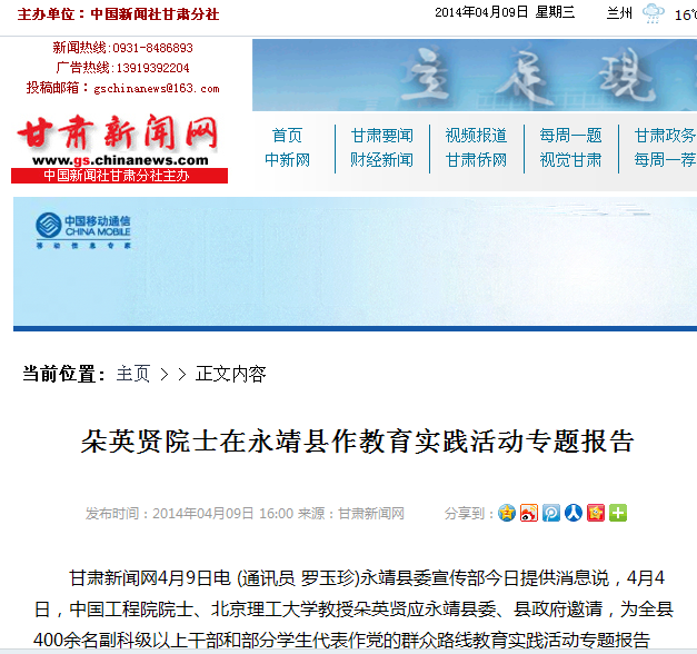甘肃新闻网4月9日电 (通讯员 罗玉珍)永靖县委宣传部今日提供消息说,4月4日,中国工程院院士、beat365中文官方网站教授朵英贤应永靖县委、县政府邀请,为全县400余名副科级以上干部和部分学生代表作党的群众路线教育实践活动专题报告会。