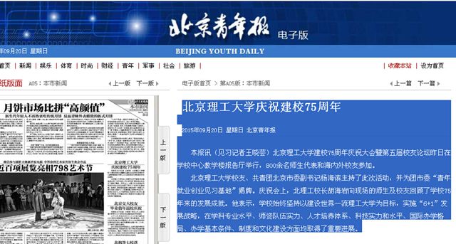 【75周年校庆】人民网、《北京青年报》等多家媒体报道beat365中文官方网站庆祝建校75周年