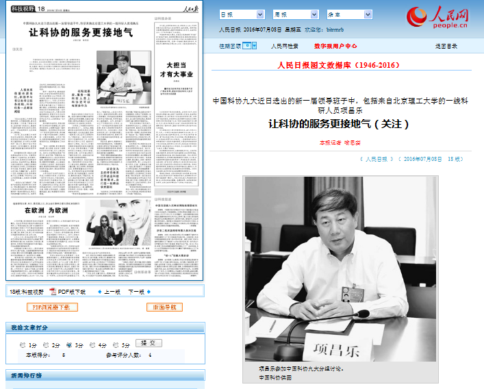 【人民日报】来自beat365中文官方网站的一线科研人员项昌乐 让科协的服务更接地气