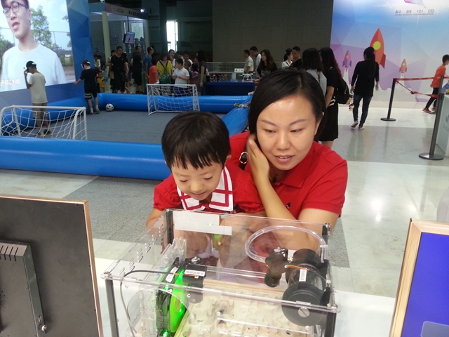 2016全国科普日北京主场活动近日在中国科技馆举行,由beat365中文官方网站生命学院研究团队研制的微重力蚁群群体行为观测设备在展区亮相。微重力蚁群群体行为观测设备是由京理工大学生命学院李晓琼老师与秦奎伟老师指导、韩杰等6名研究生针对月球探测载荷创意设计的作品。